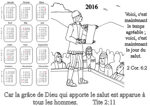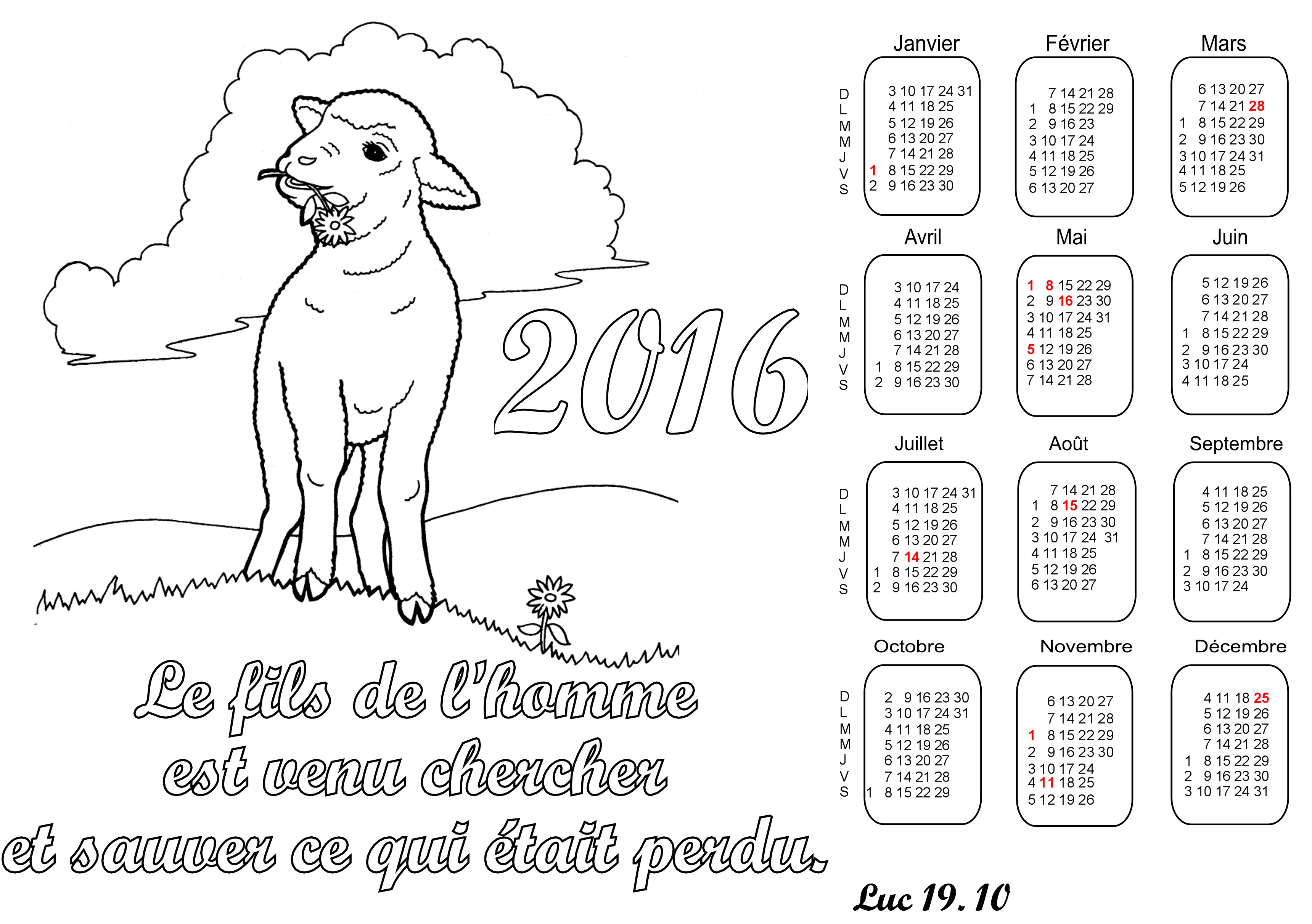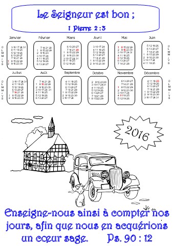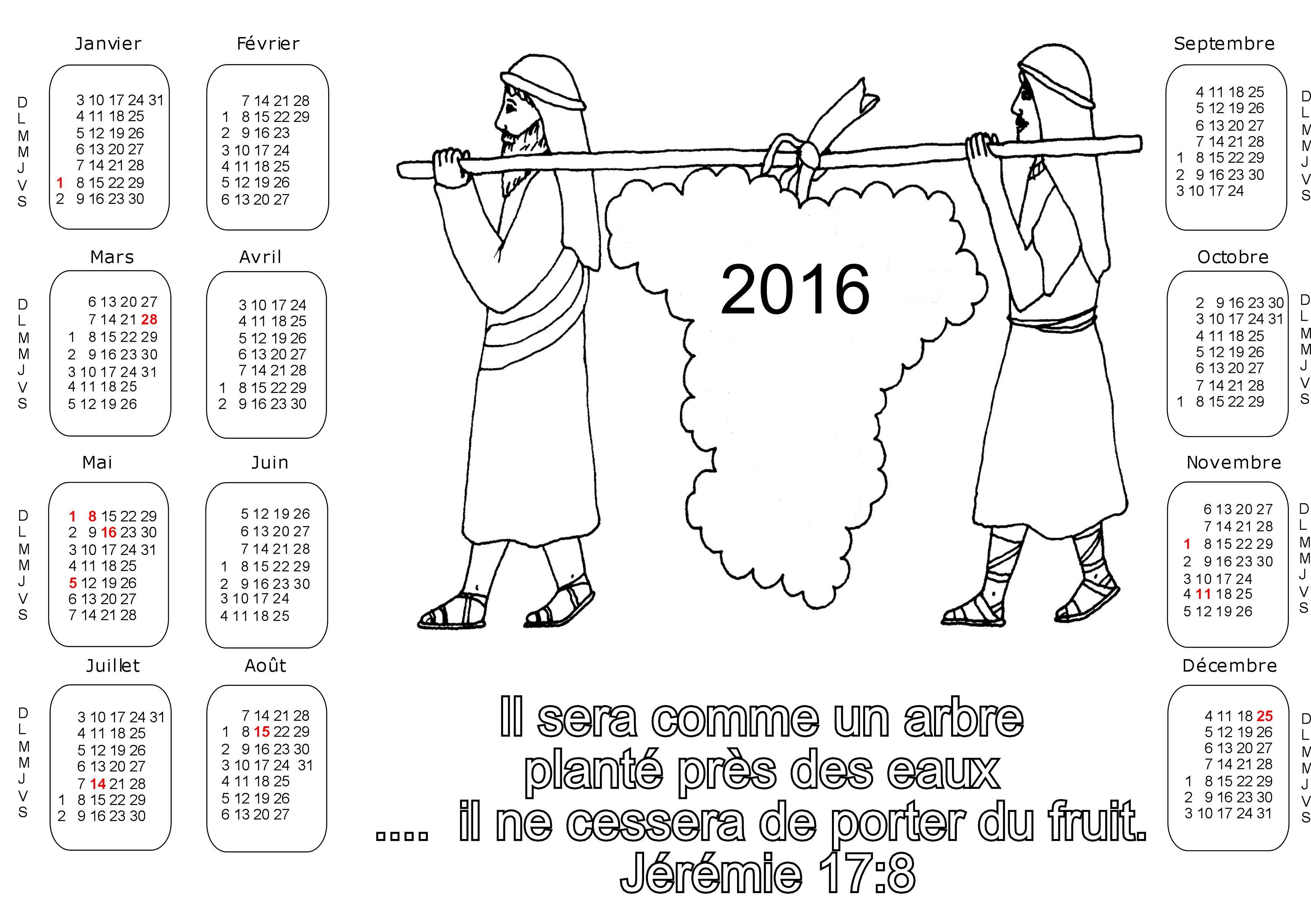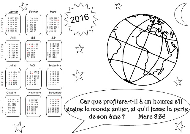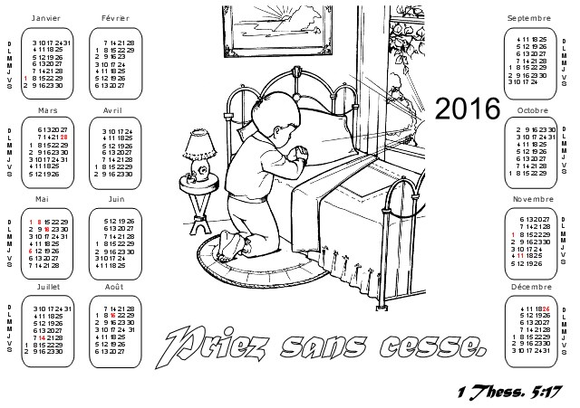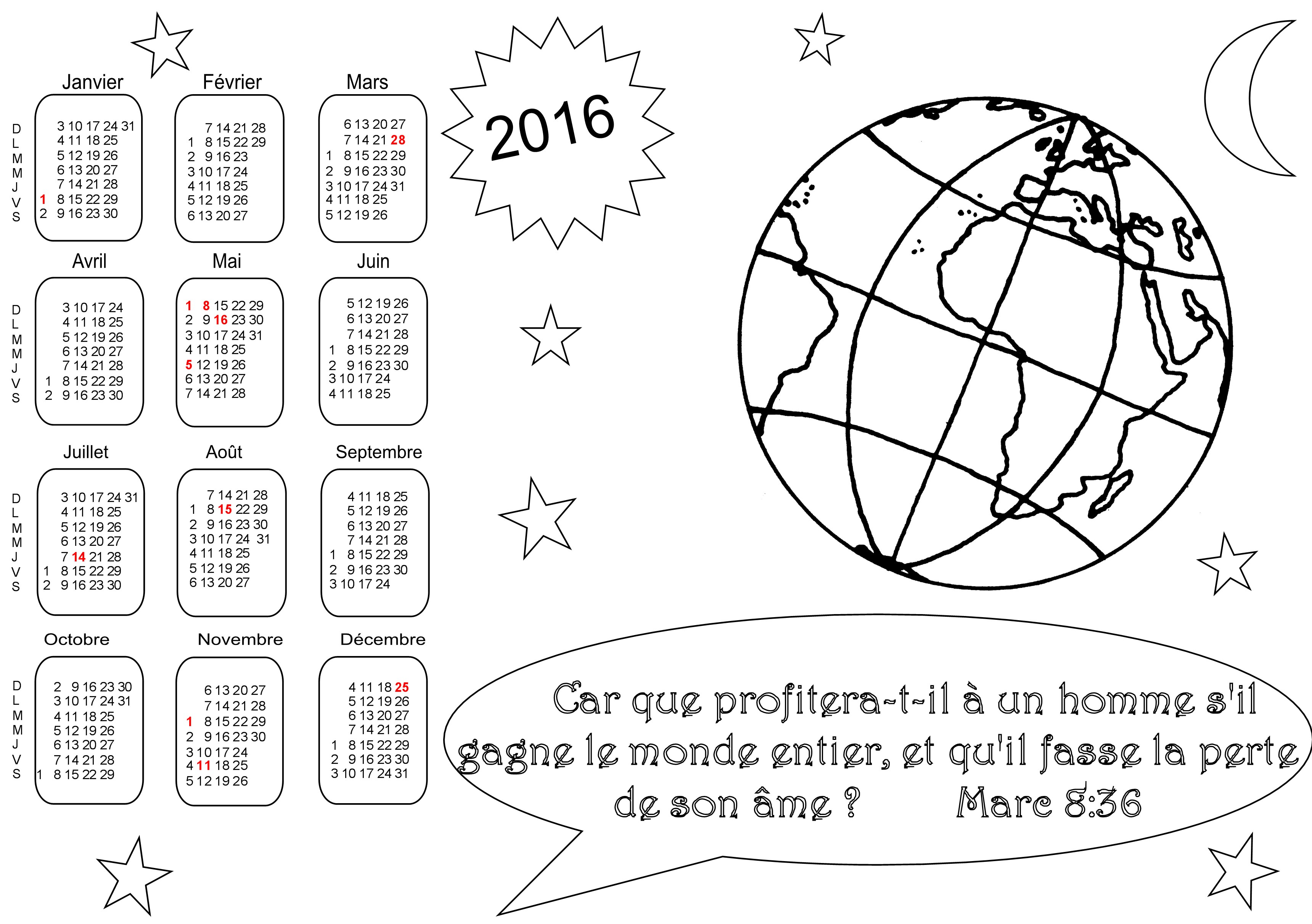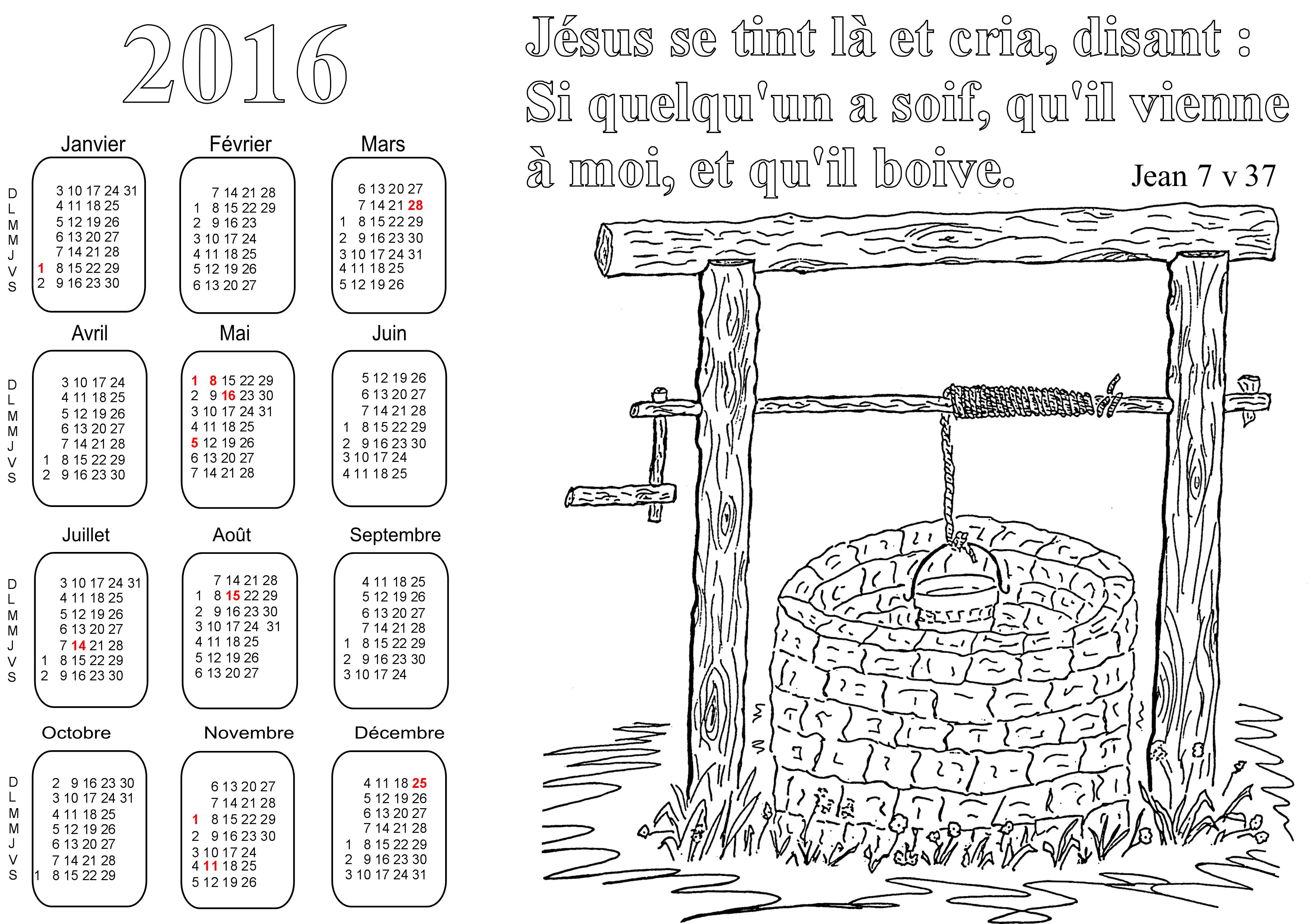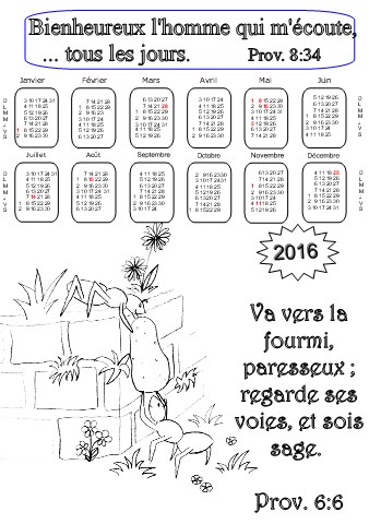 Pour l'année 2016, voici 91 CALENDRIERS bibliques à colorier, ou à imprimer à partir de photos.