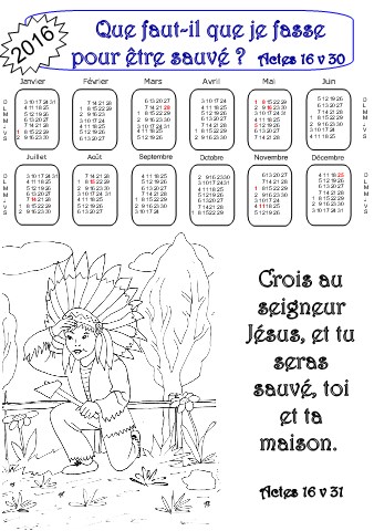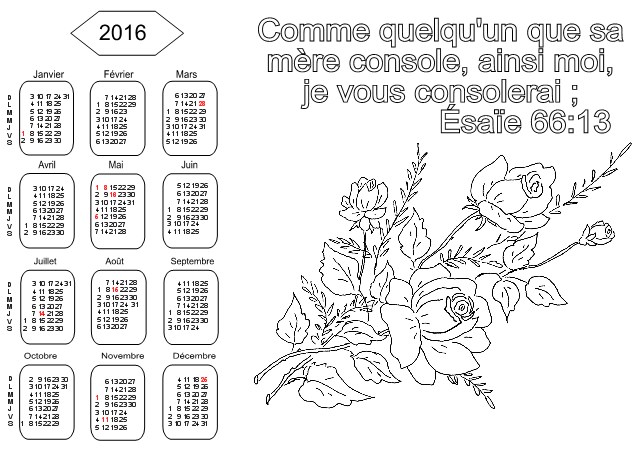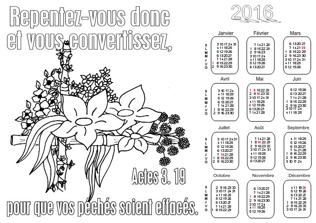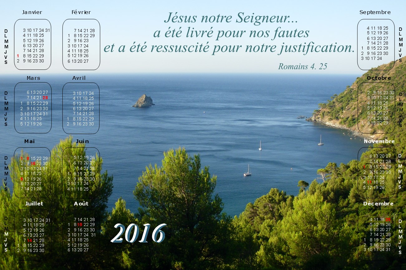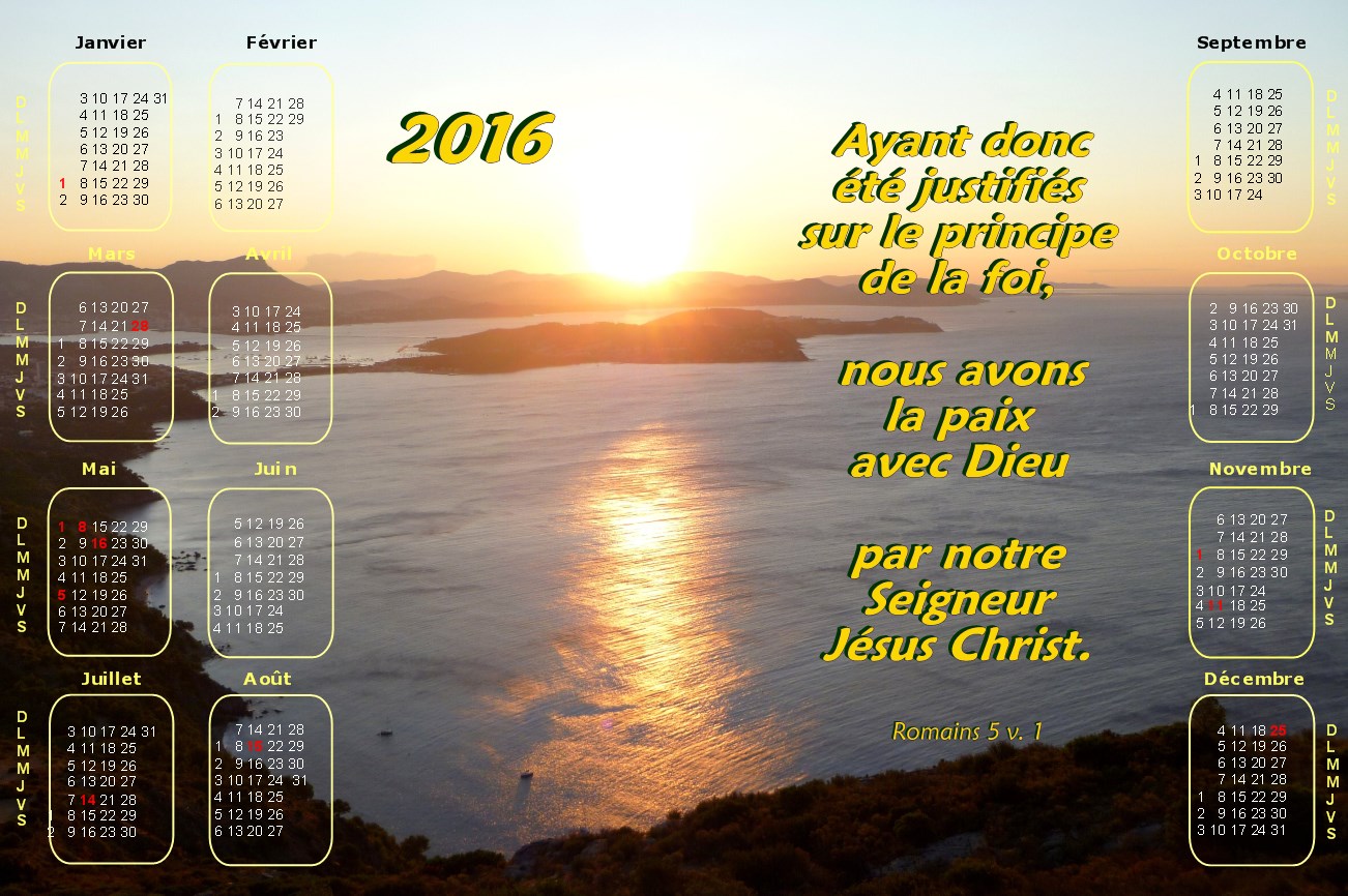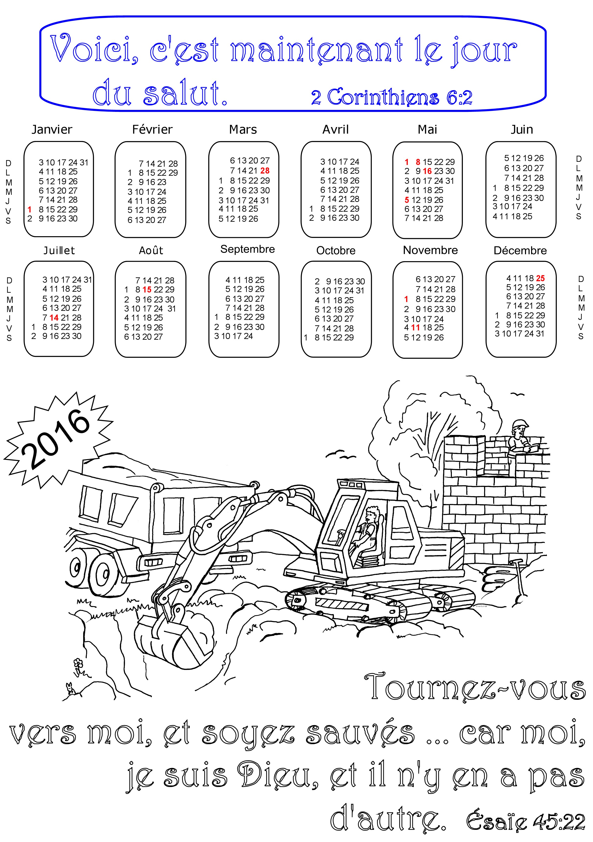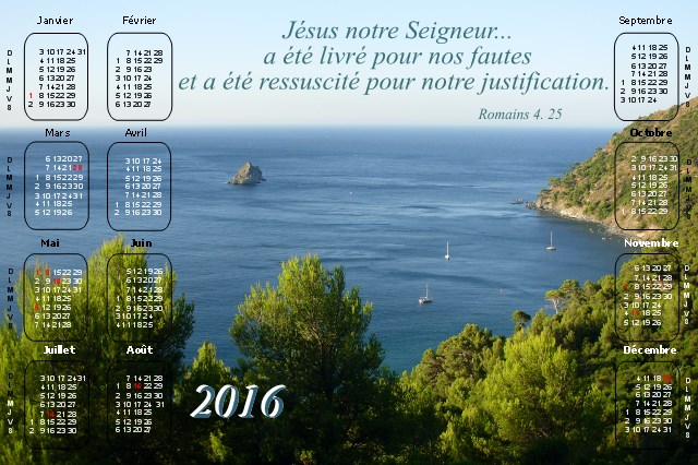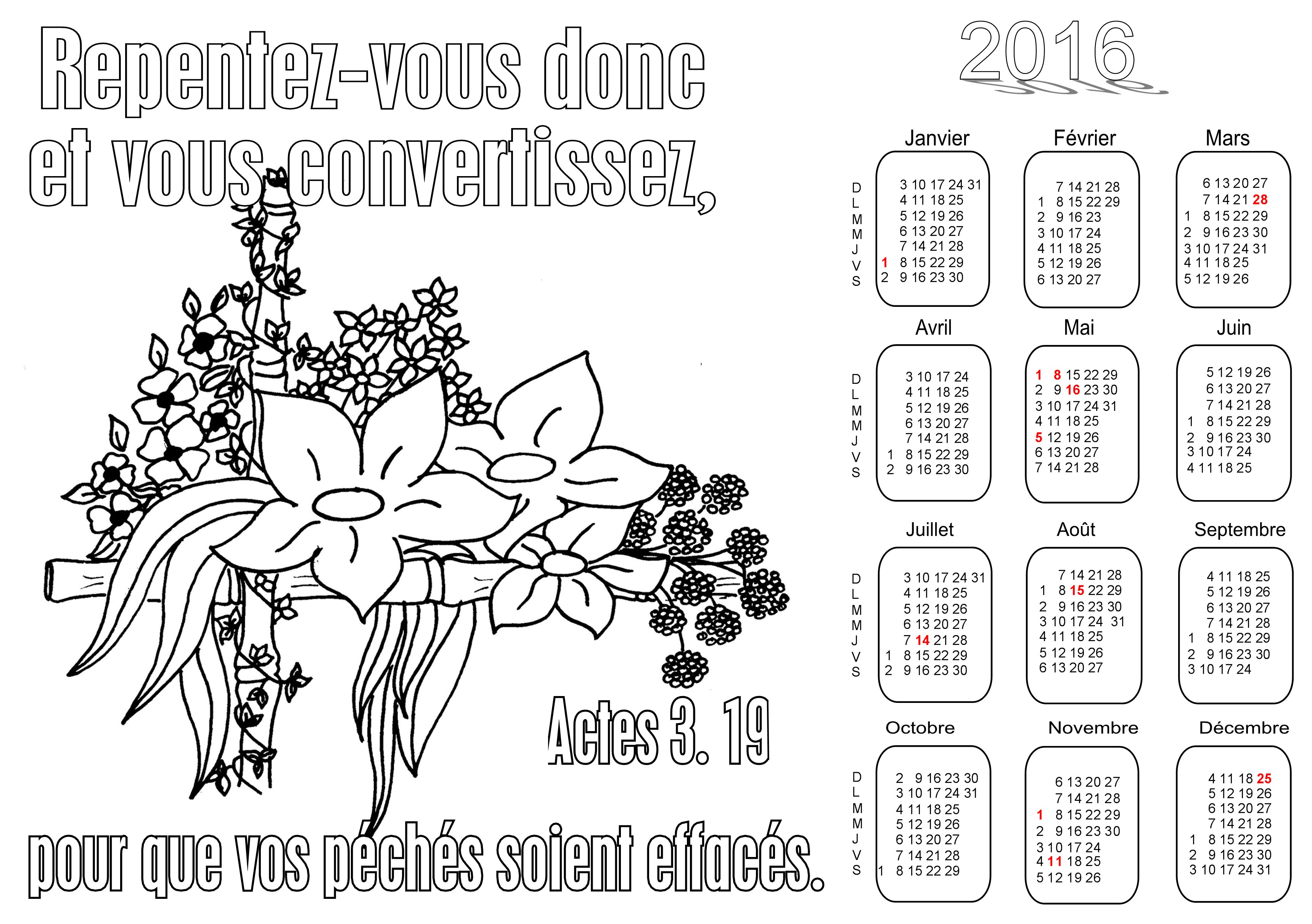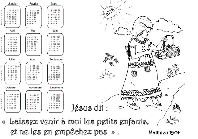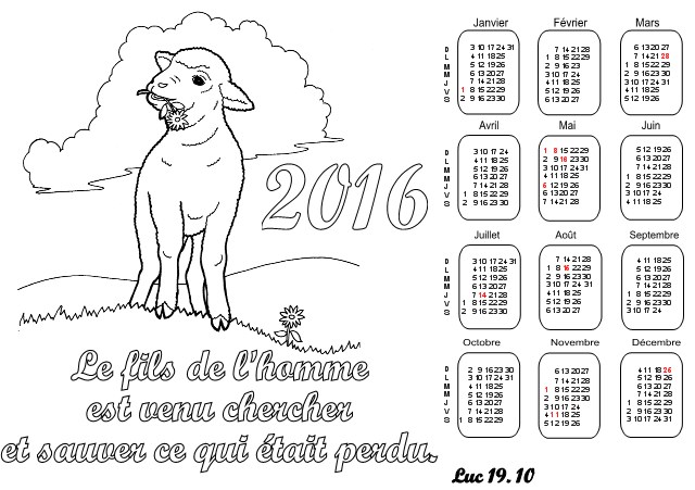 Pour l'année 2016, voici 91 CALENDRIERS bibliques à colorier, ou à imprimer à partir de photos.