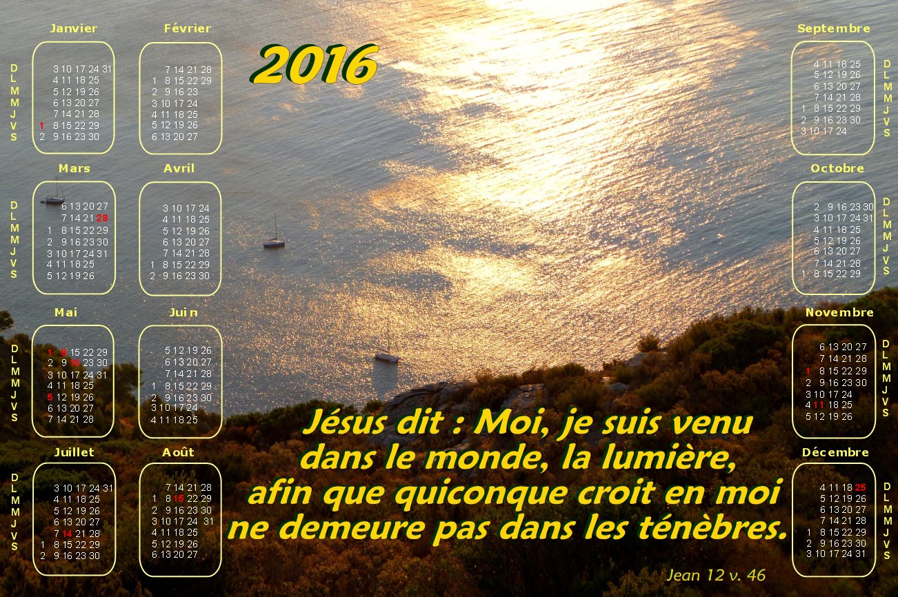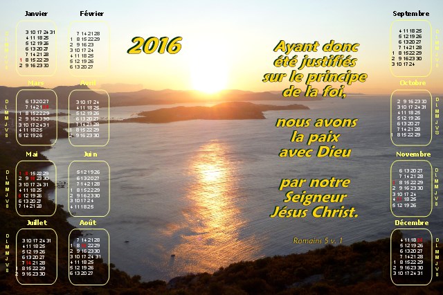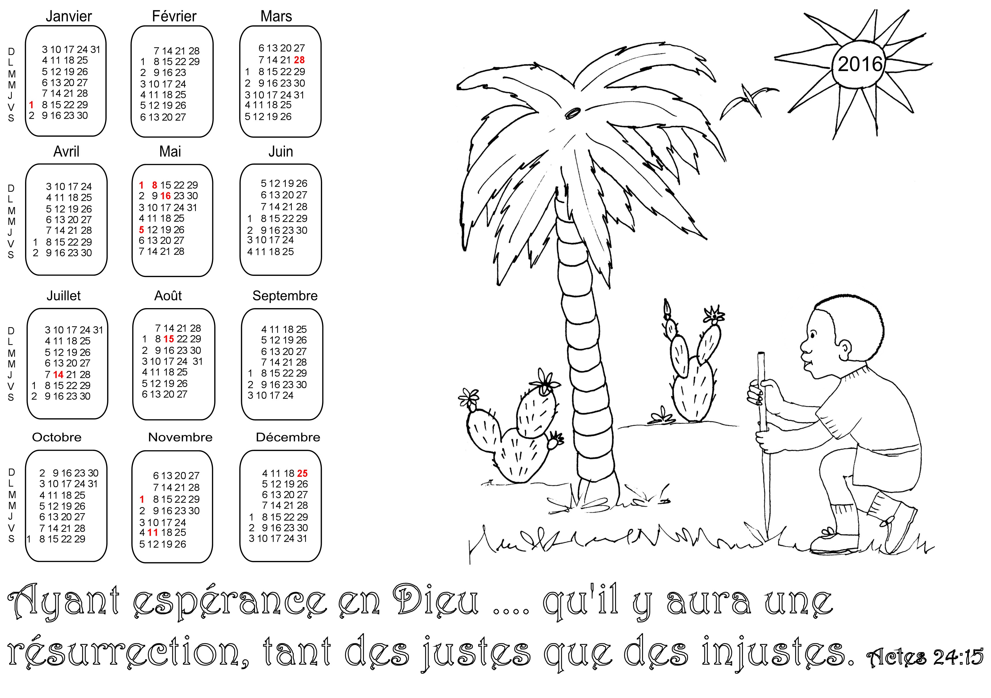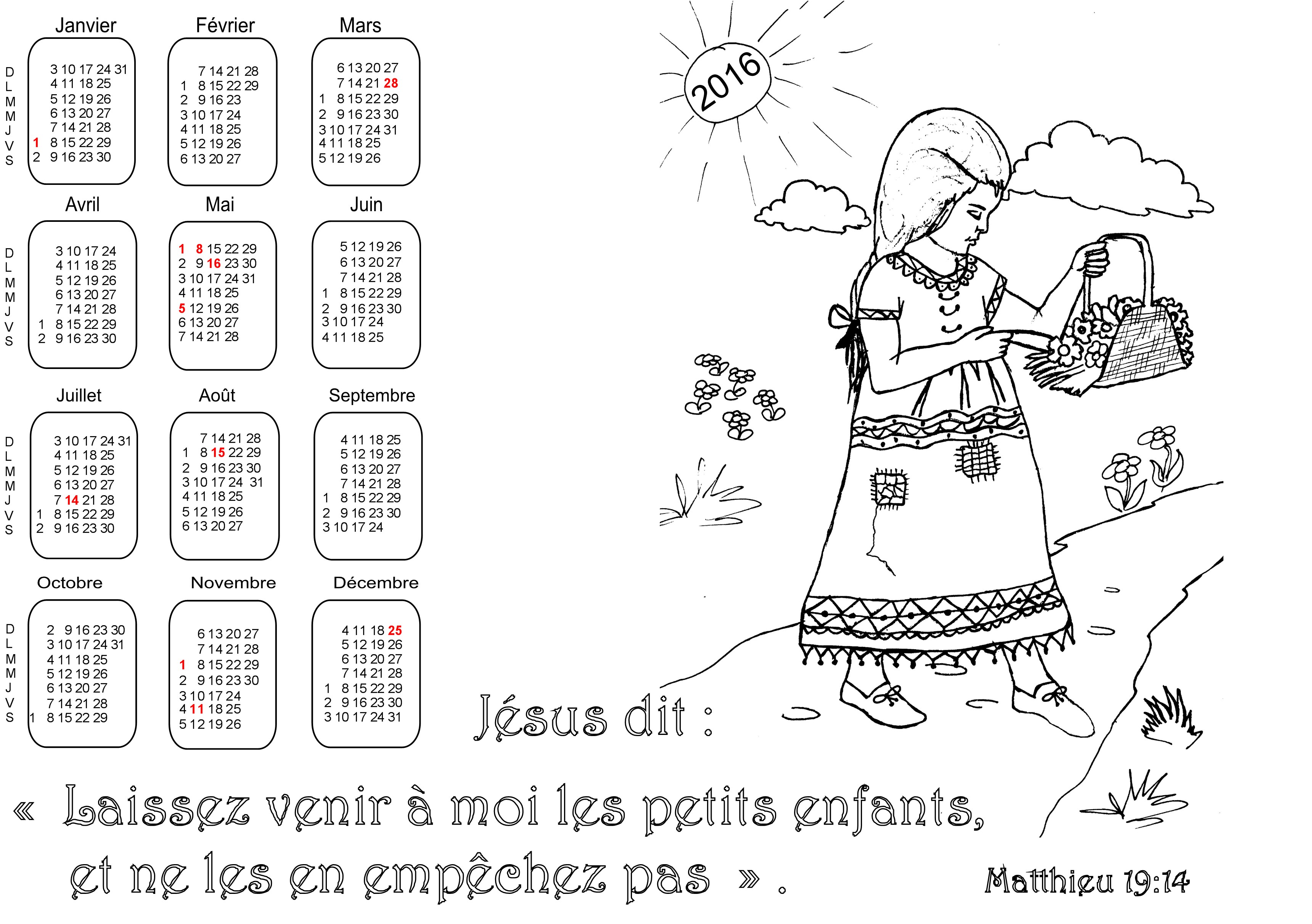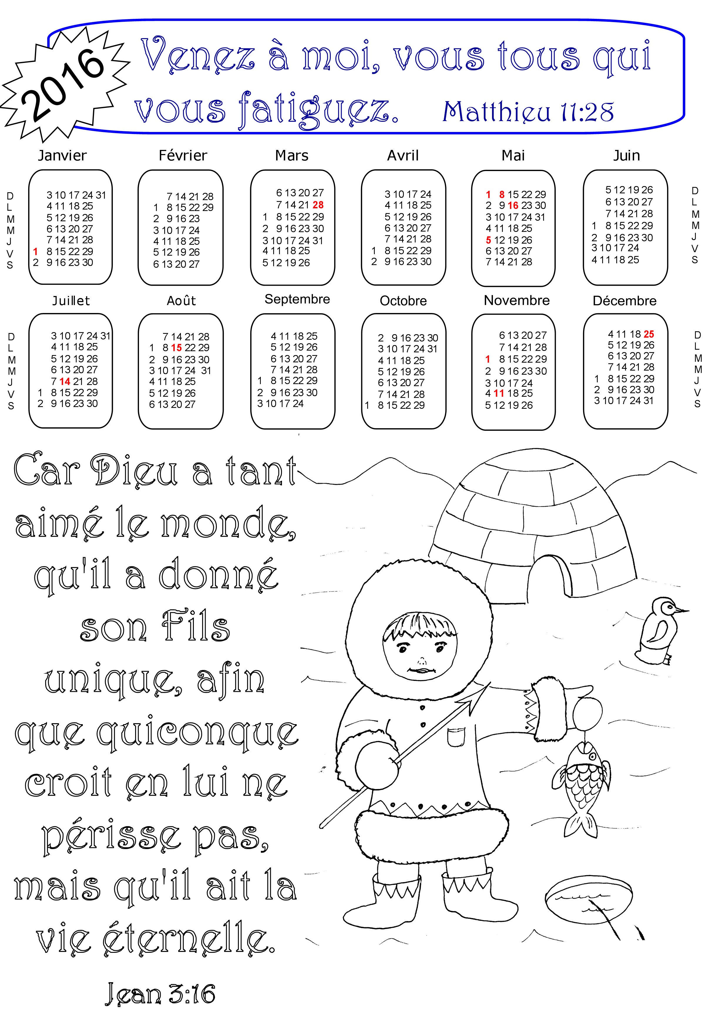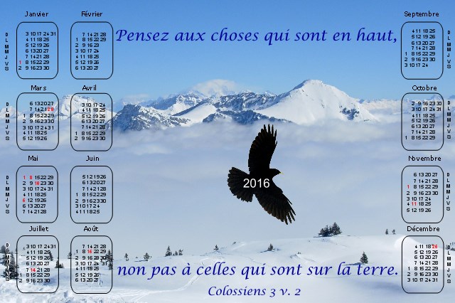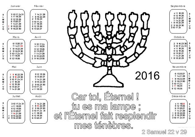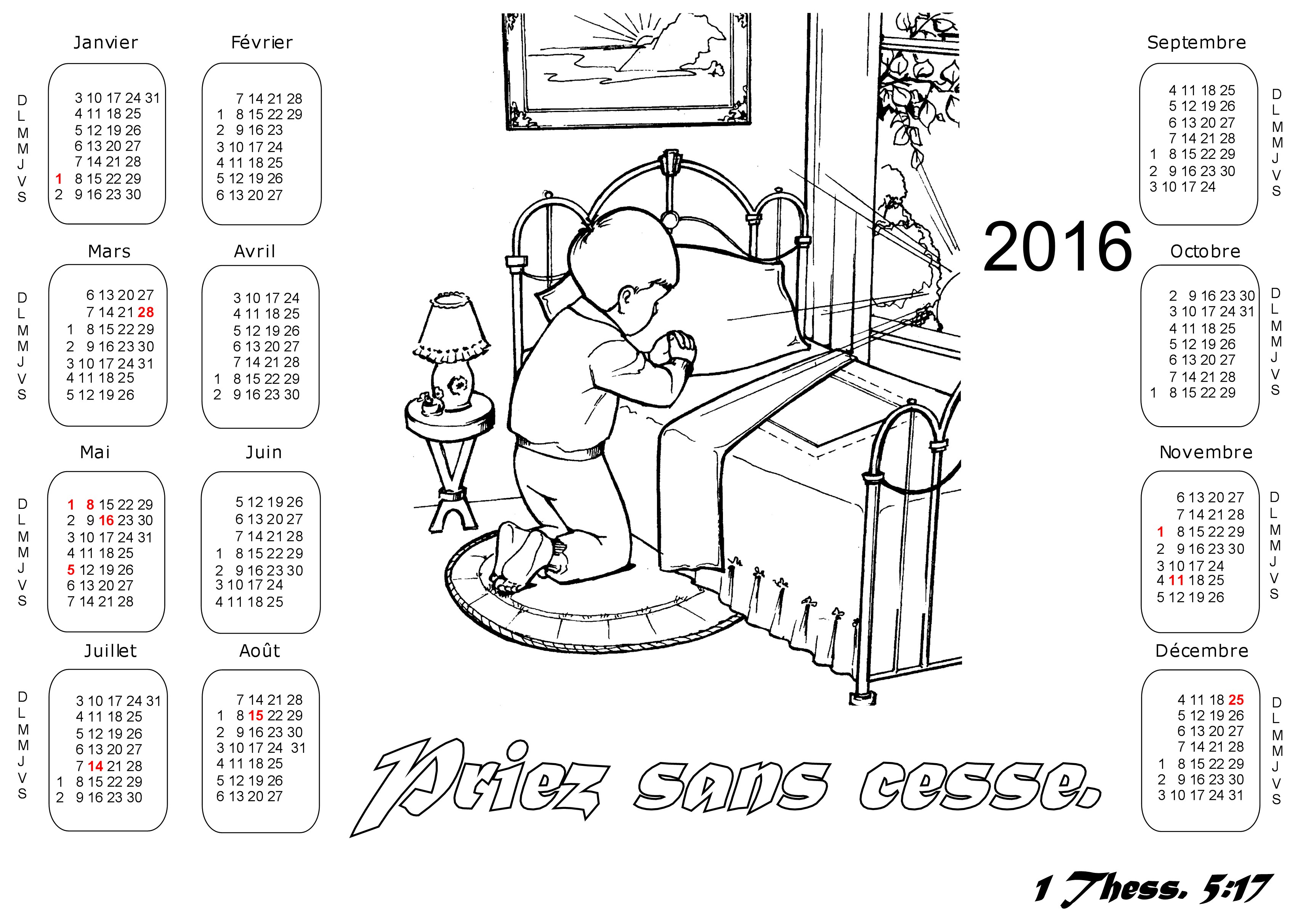 Pour l'année 2016, voici 91 CALENDRIERS bibliques à colorier, ou à imprimer à partir de photos.