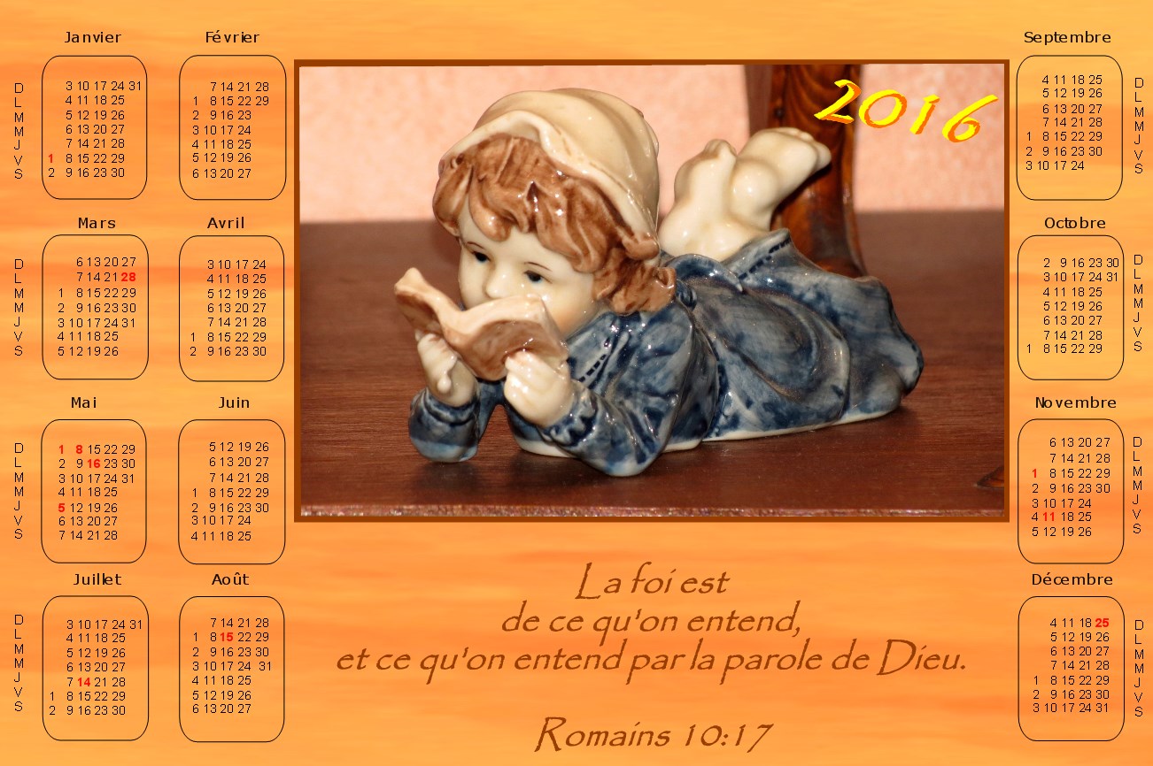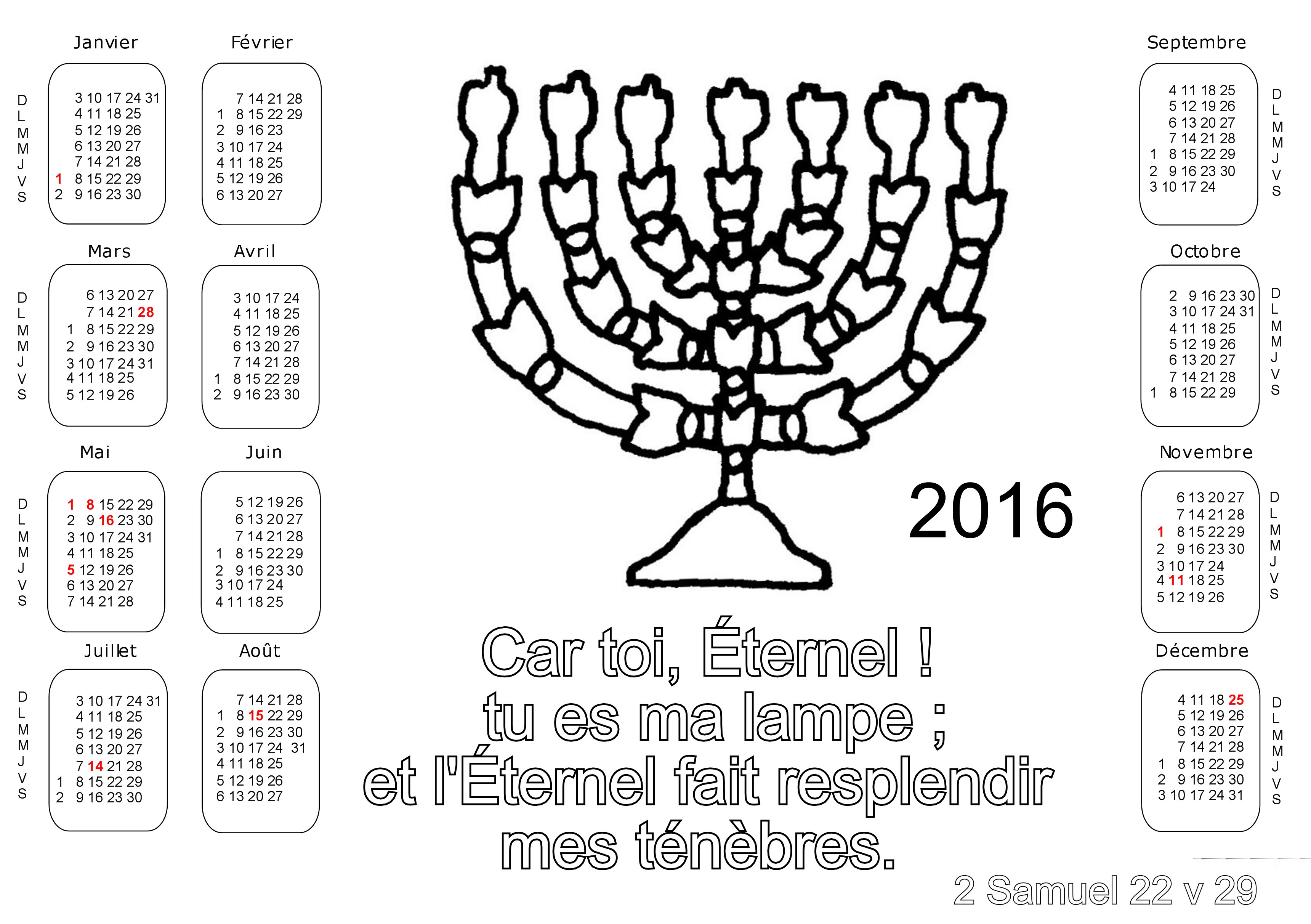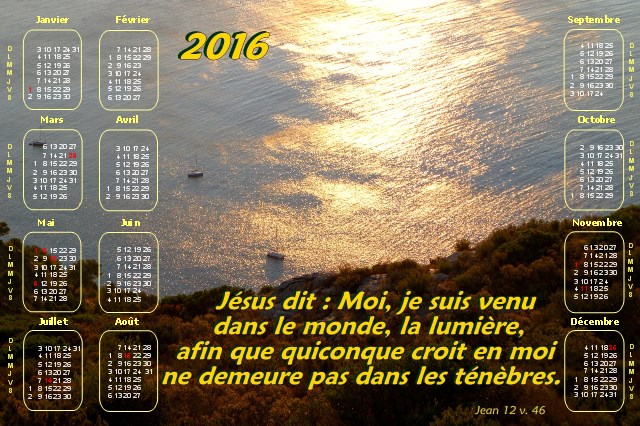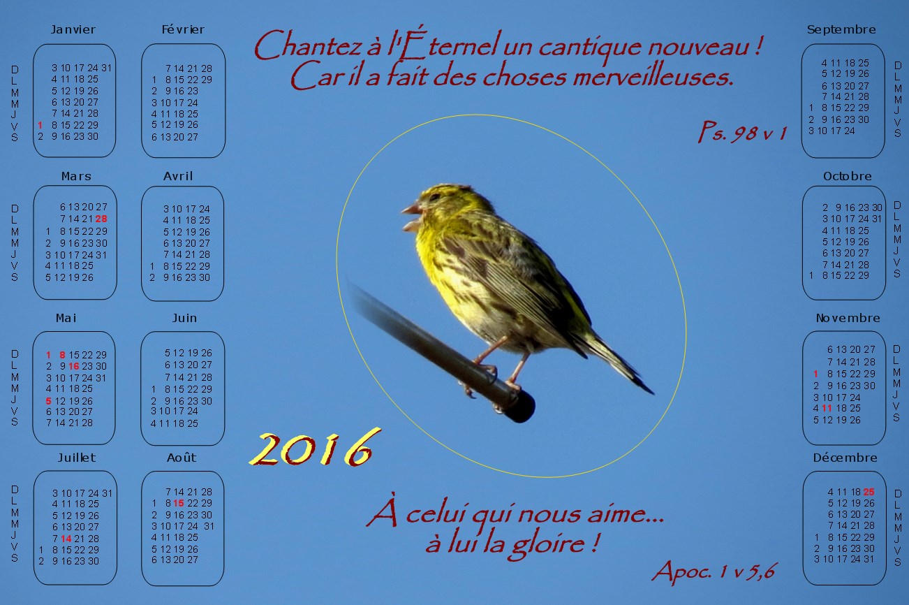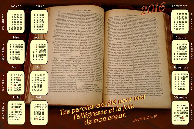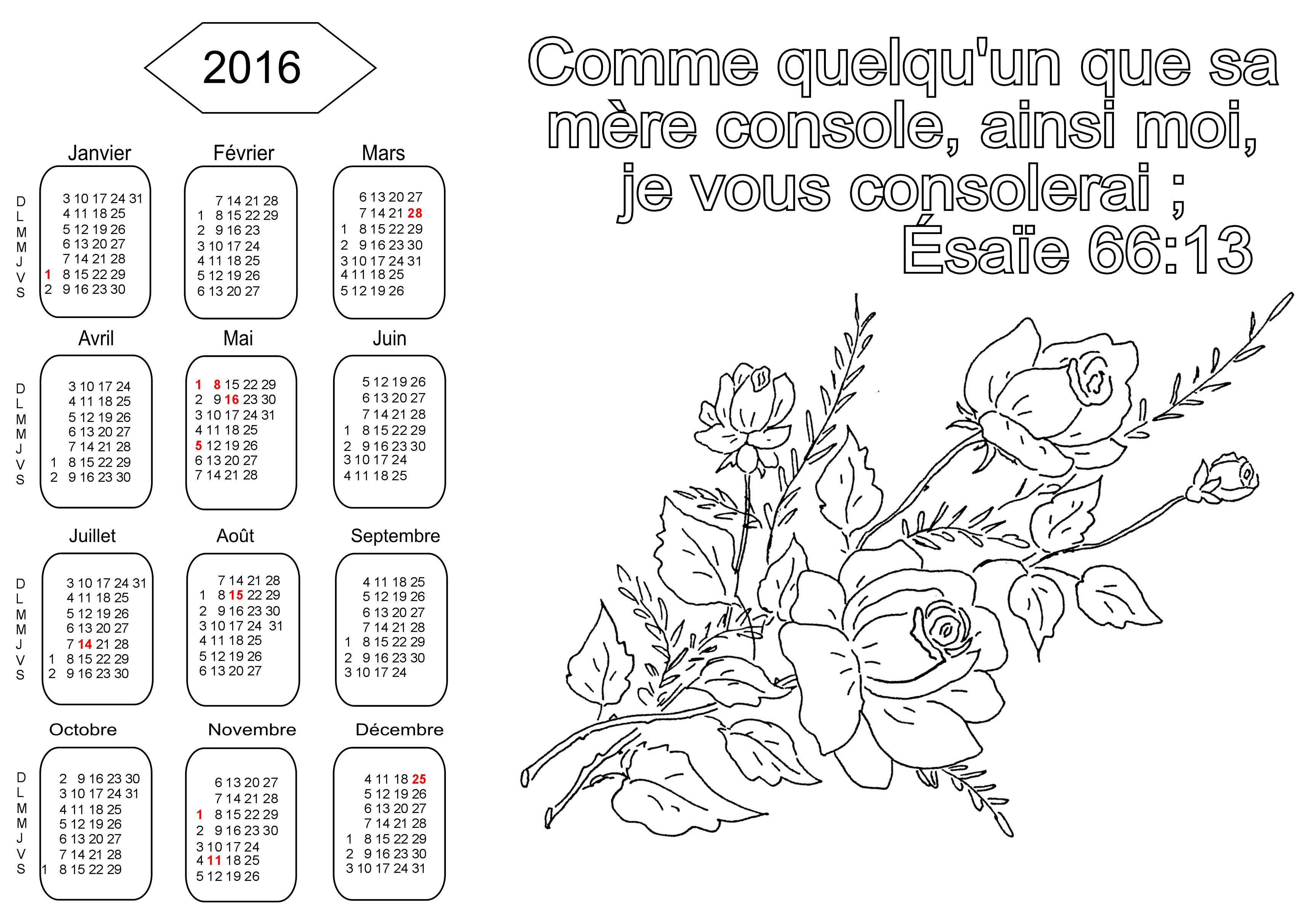 Pour l'année 2016, voici 91 CALENDRIERS bibliques à colorier, ou à imprimer à partir de photos.