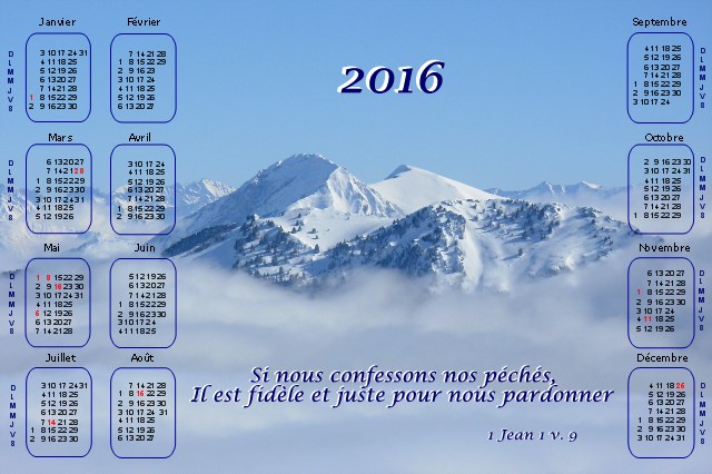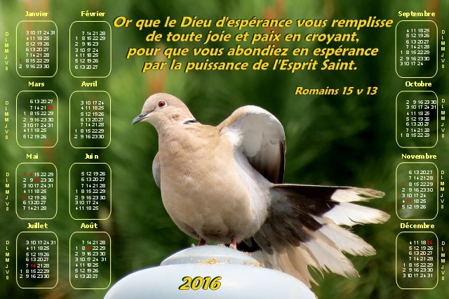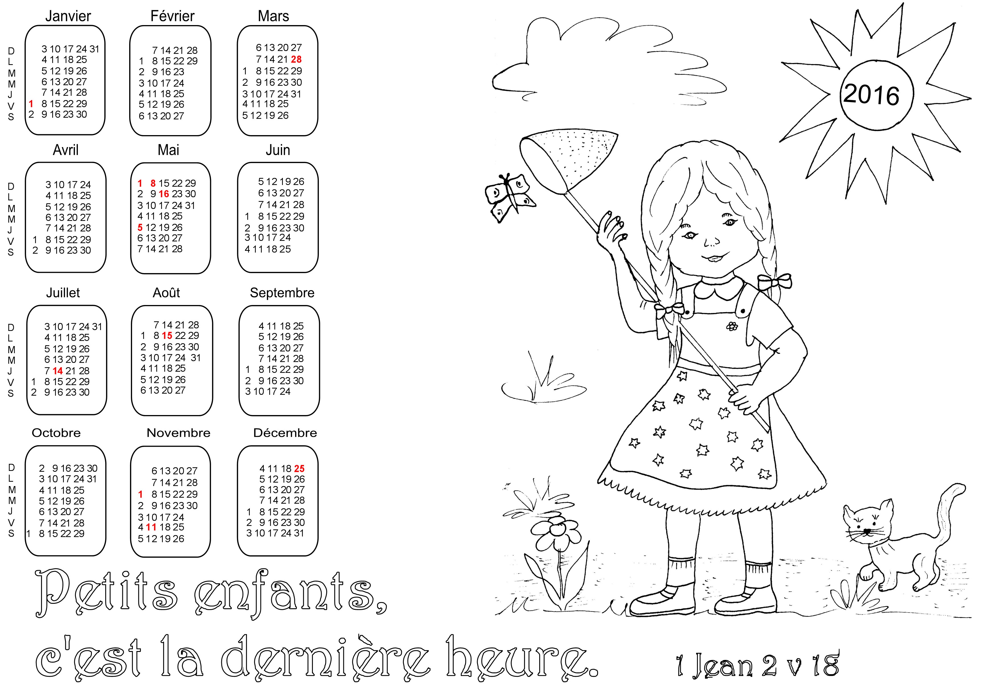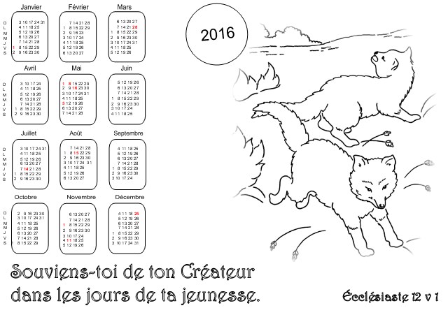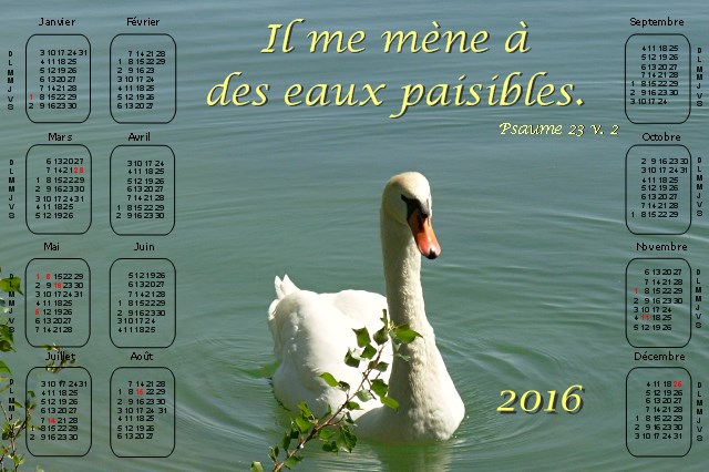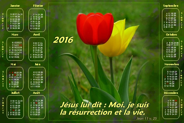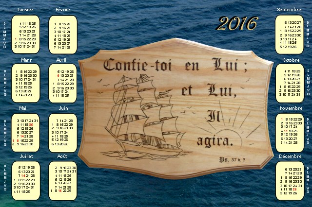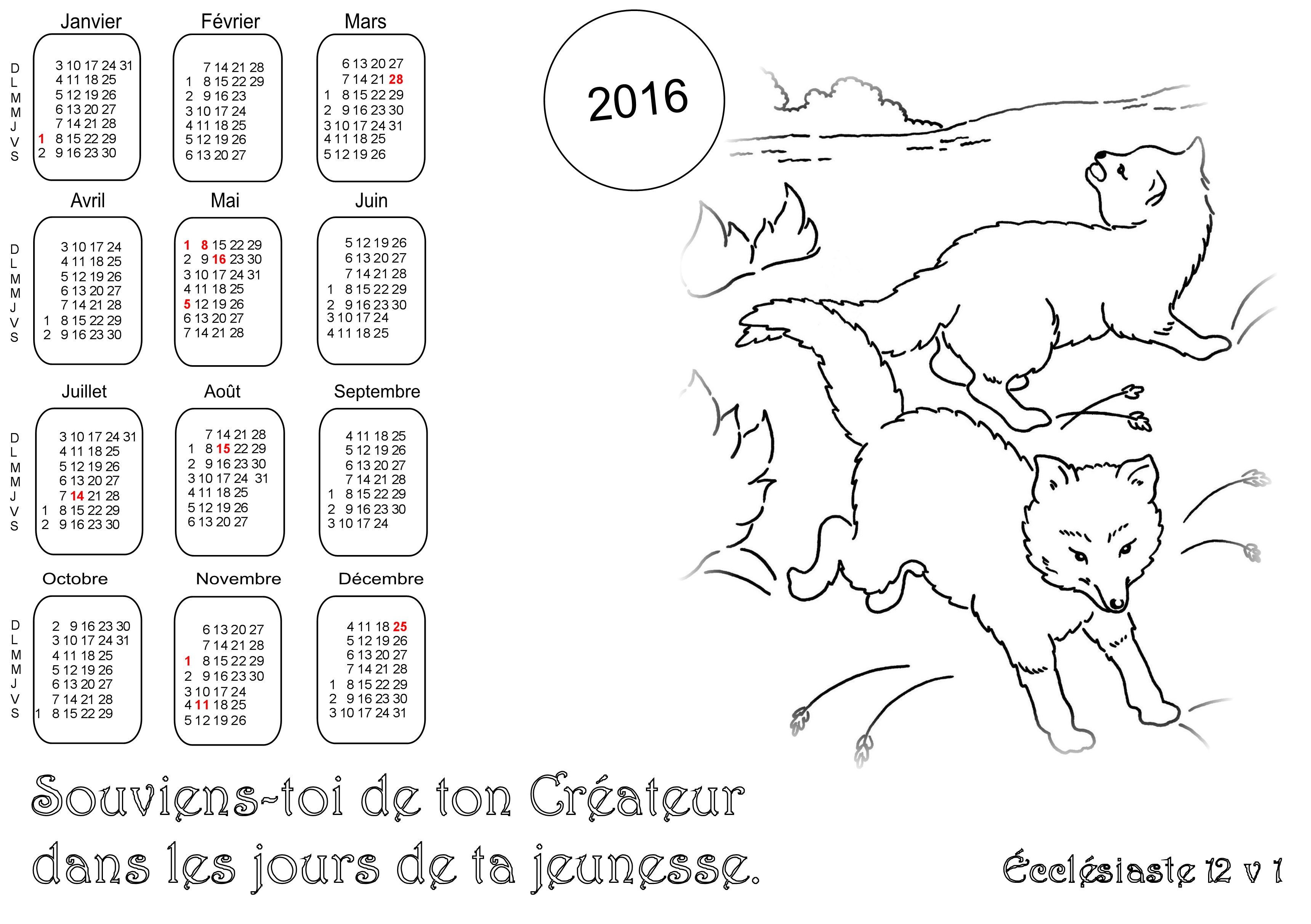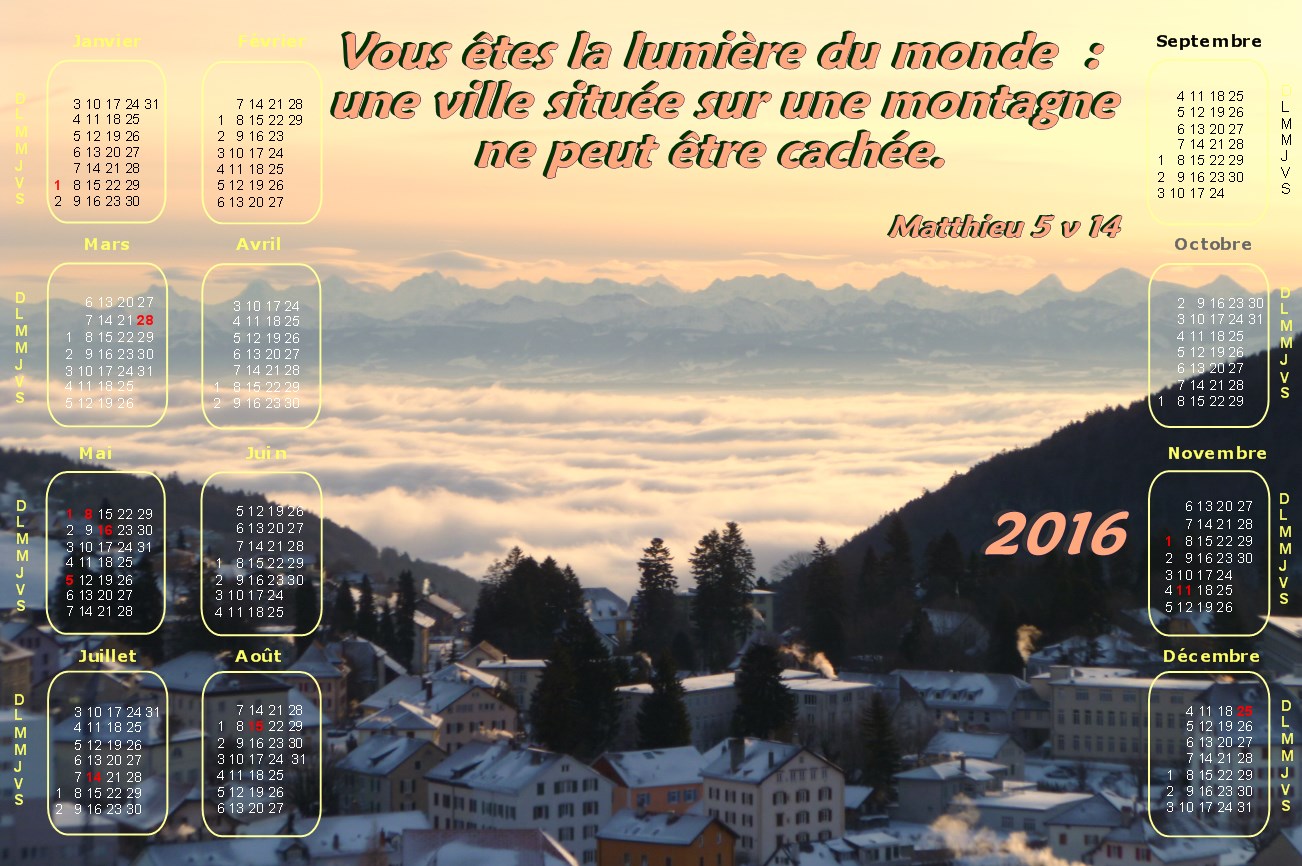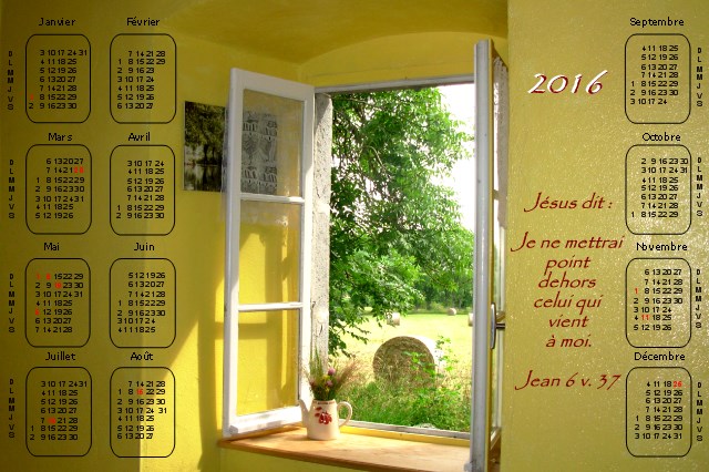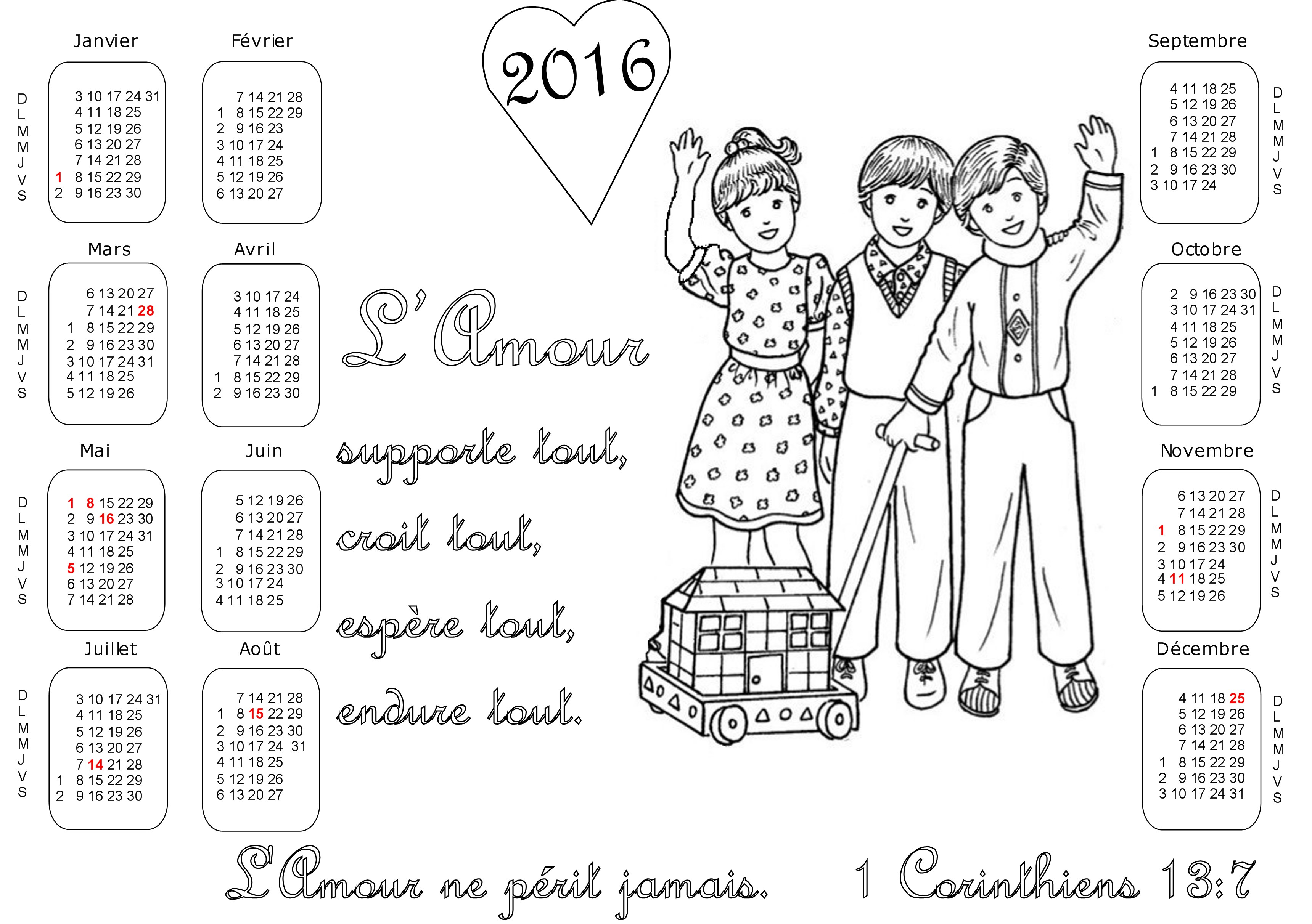 Pour l'année 2016, voici 91 CALENDRIERS bibliques à colorier, ou à imprimer à partir de photos.