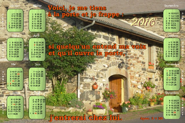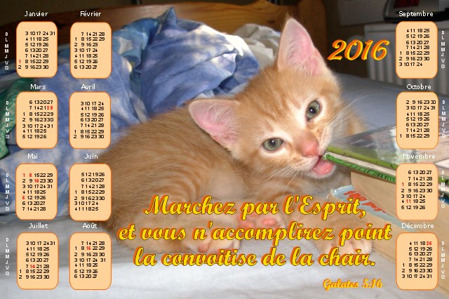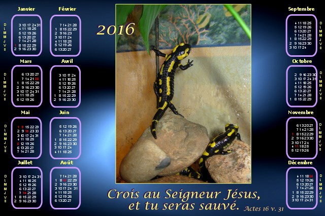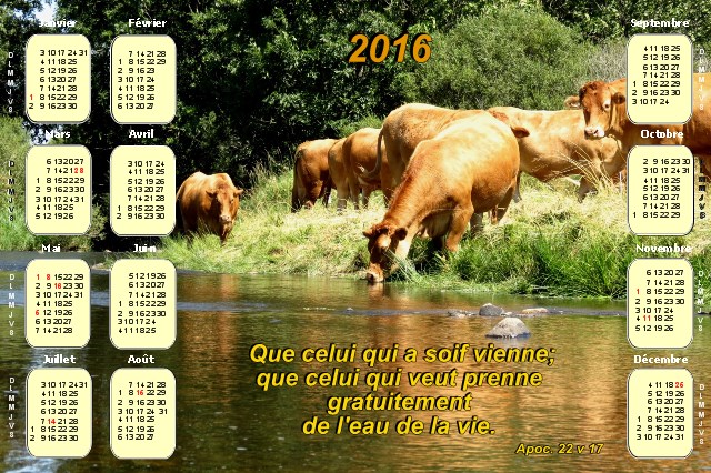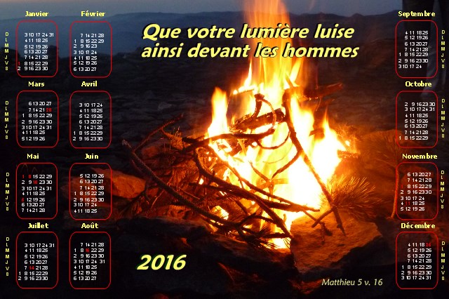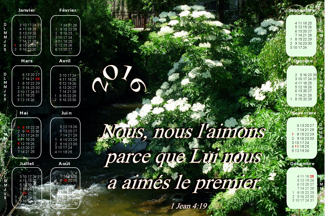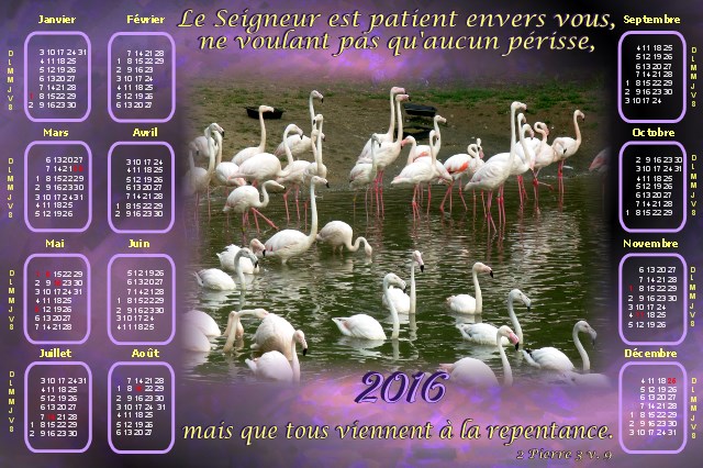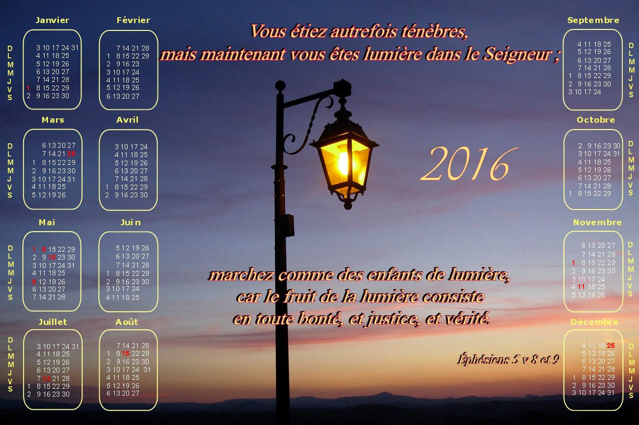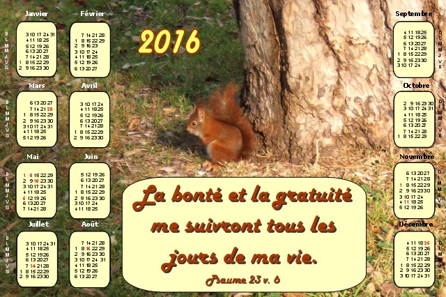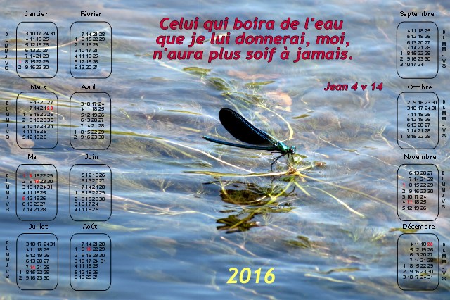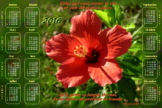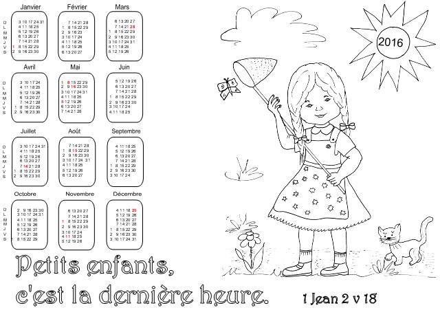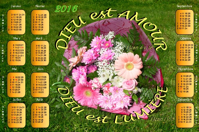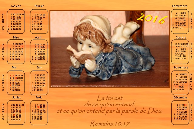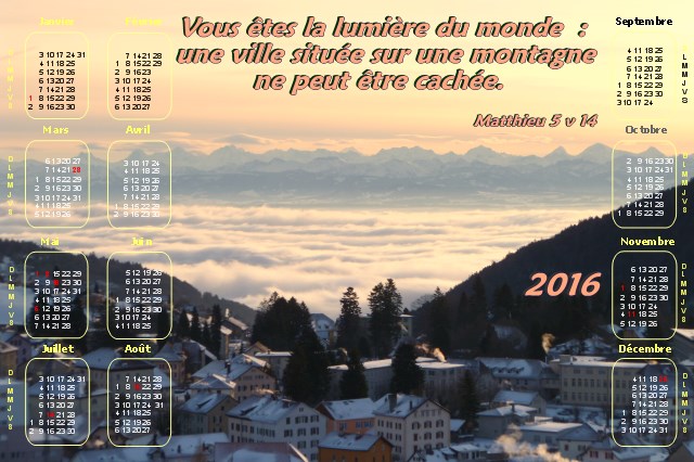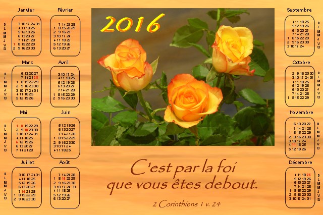 Pour l'année 2016, voici 91 CALENDRIERS bibliques à colorier, ou à imprimer à partir de photos.