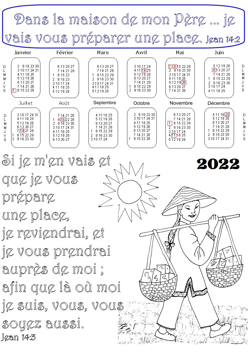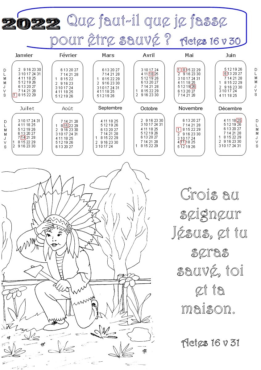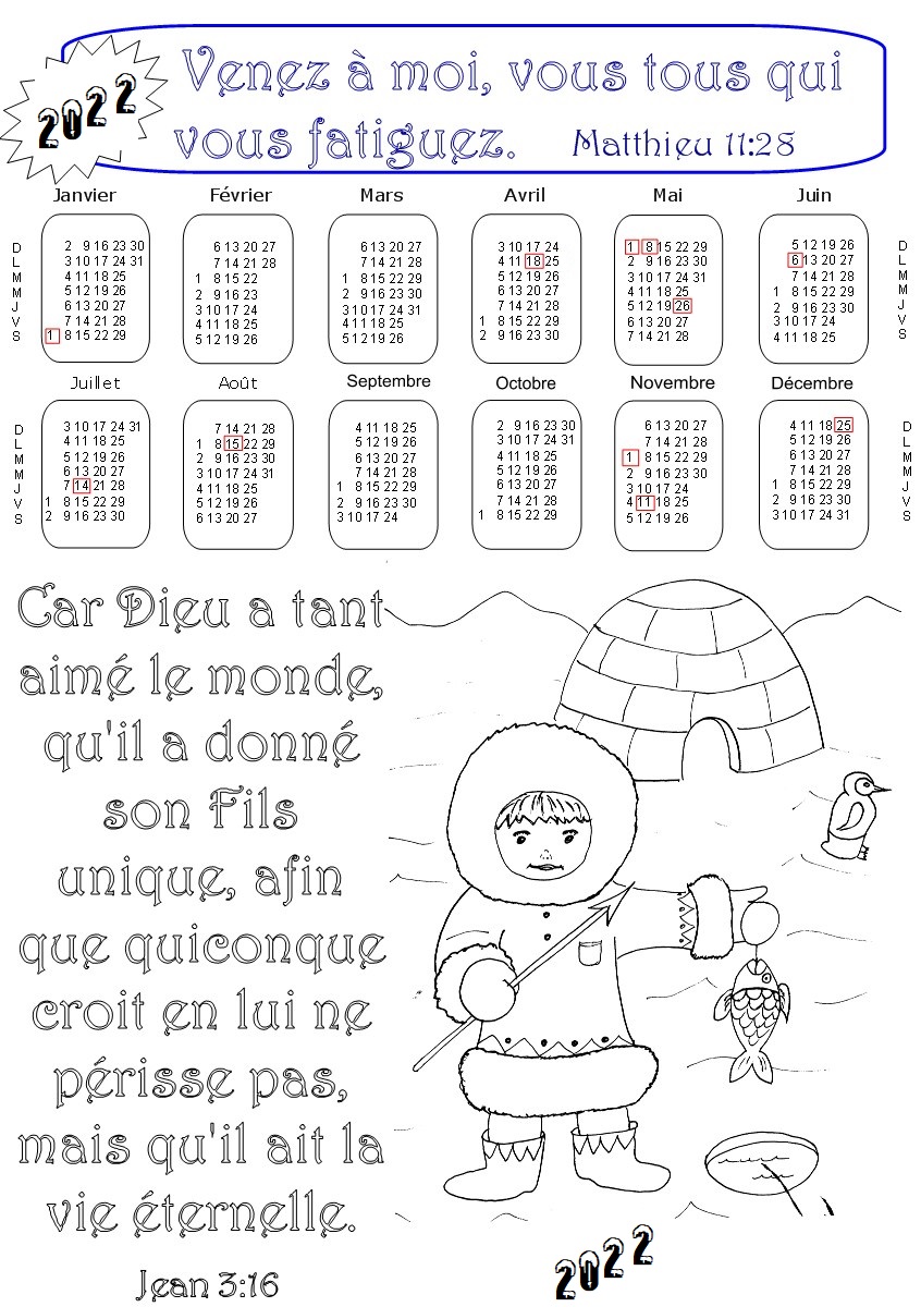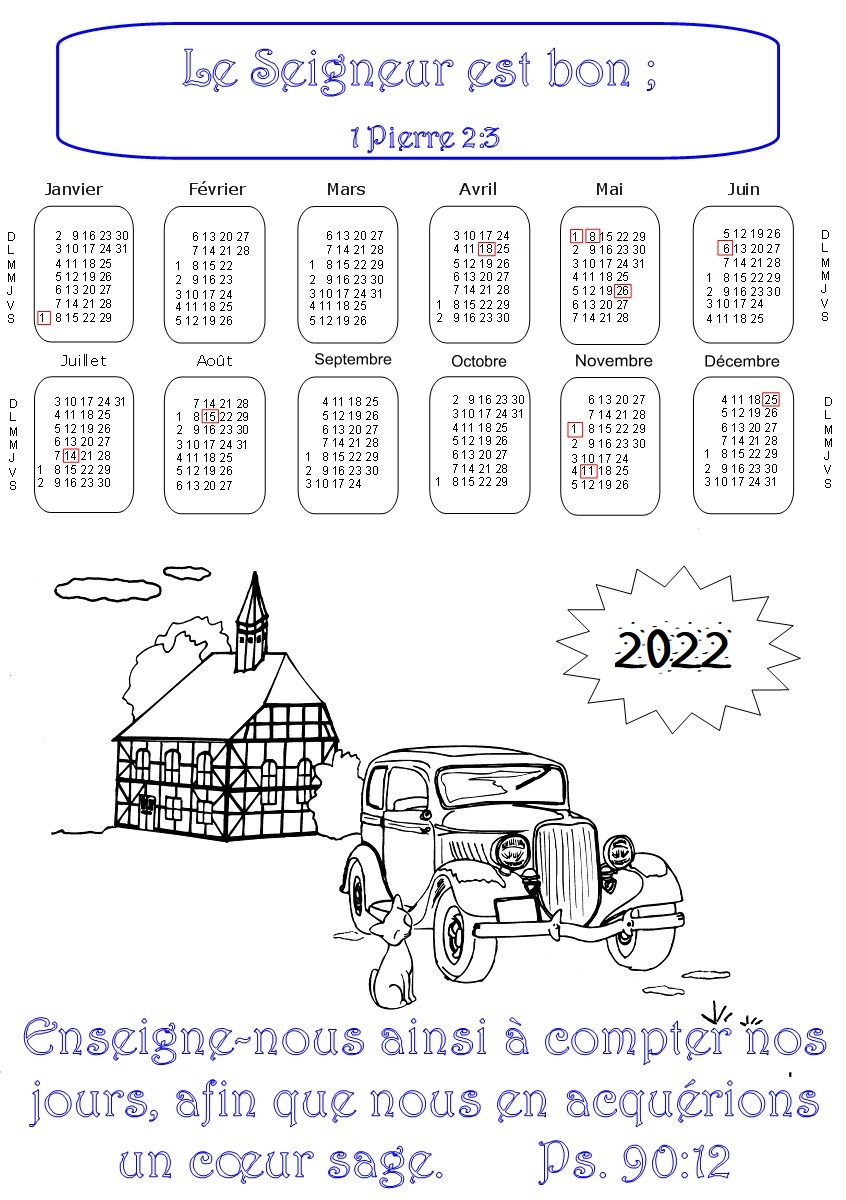 Pour l'année 2022, voici 21 CALENDRIERS bibliques à colorier, ou à imprimer à partir de photos.