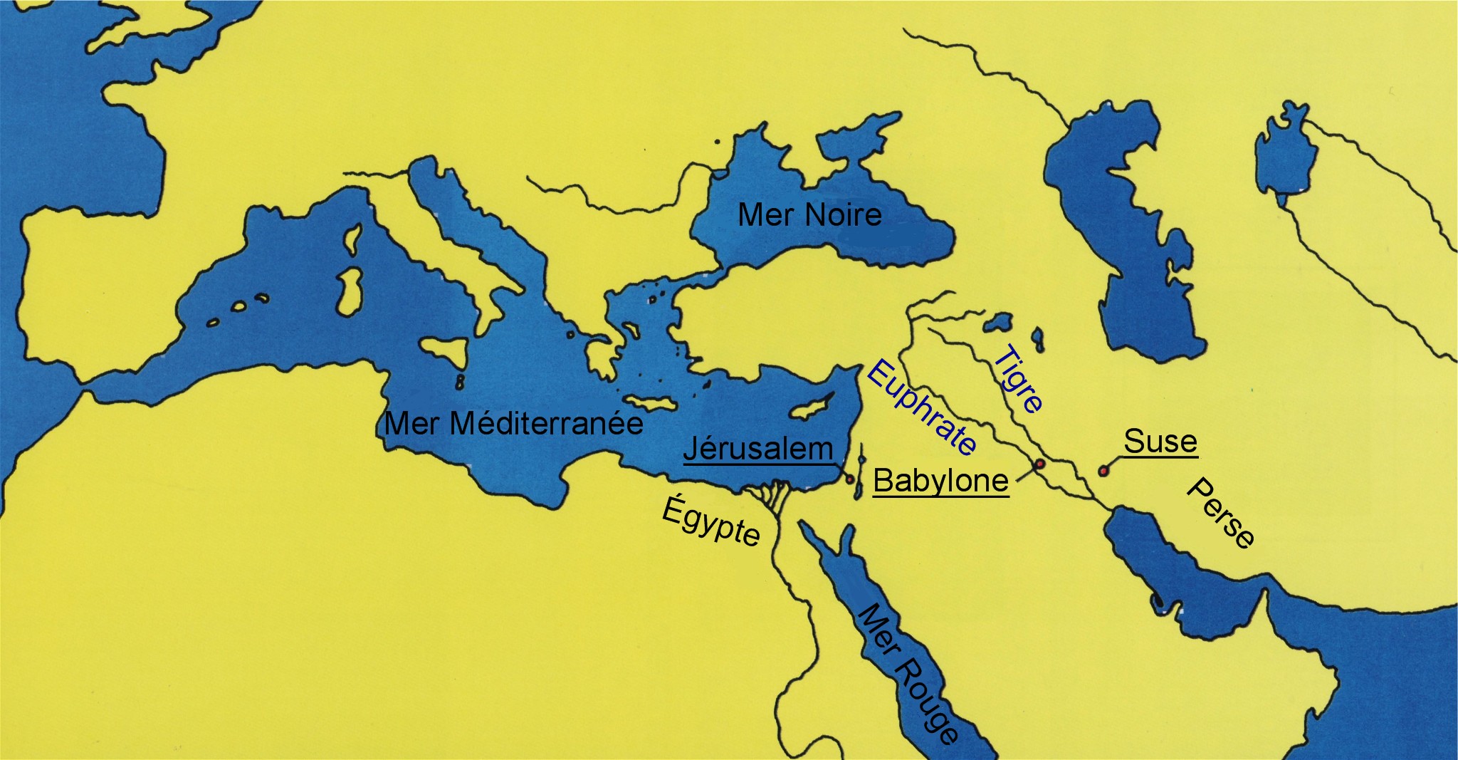 La Babylonie était un puissant royaume à l'Est, entre les deux fleuves que sont l'Euphrate et le Tigre. Aujourd'hui, les pays d'Irak et d'Iran se trouvent à cet endroit (voir la carte à la fin du livre).