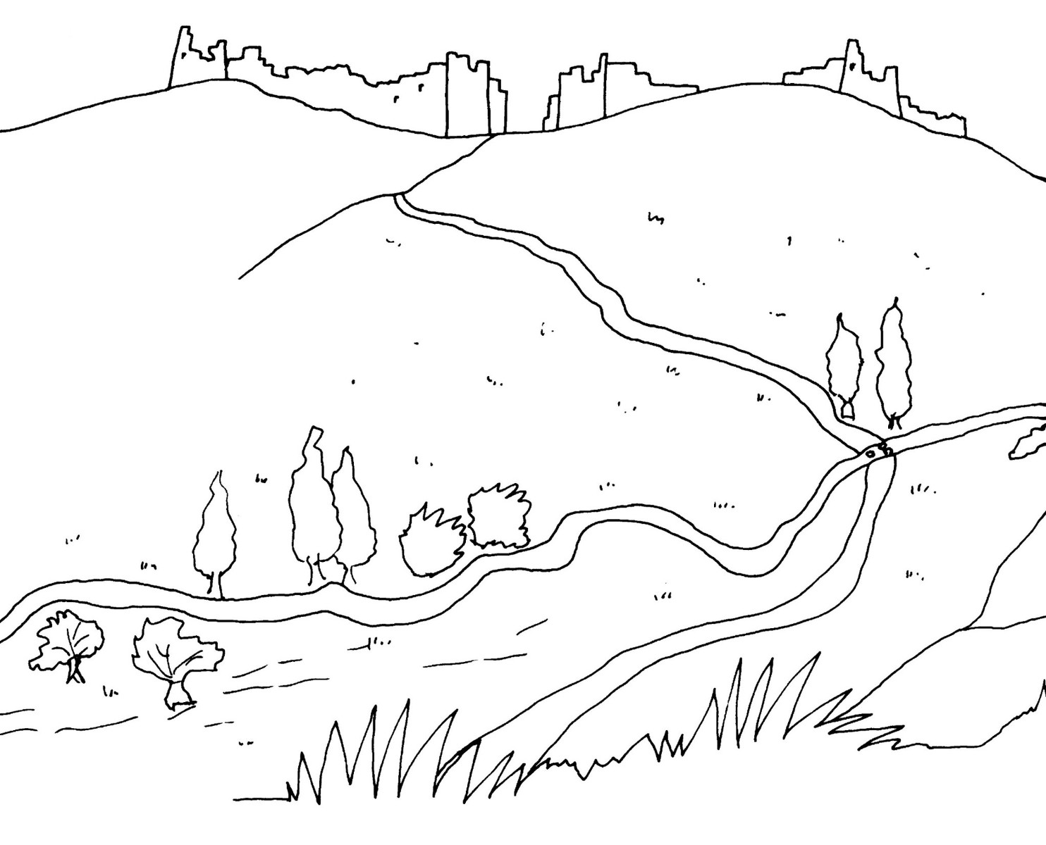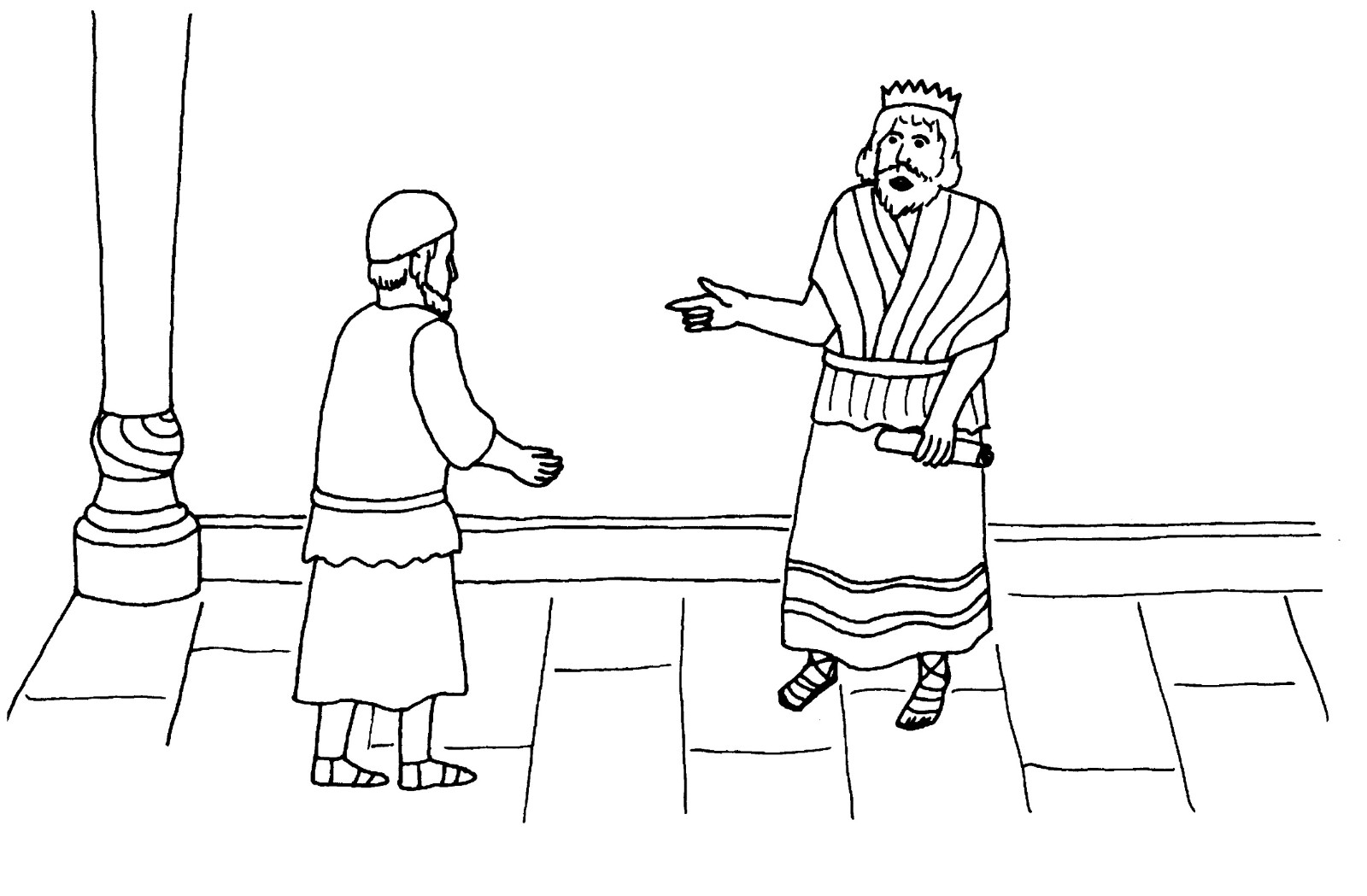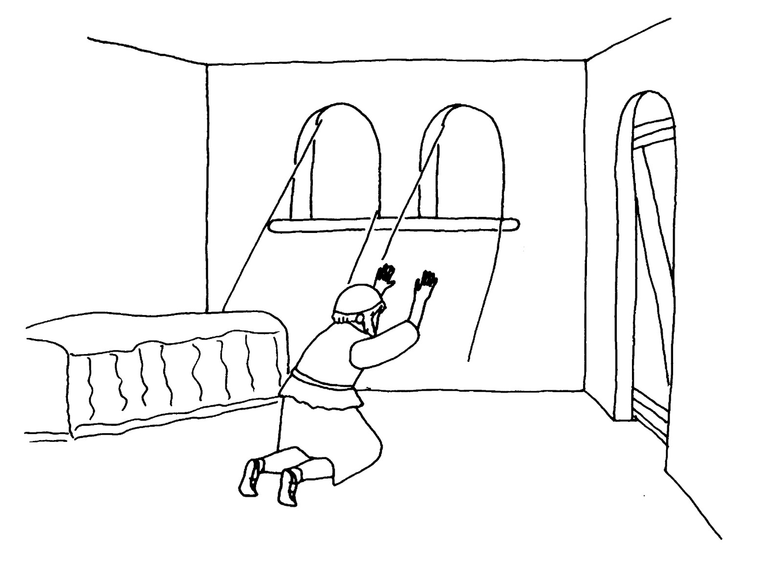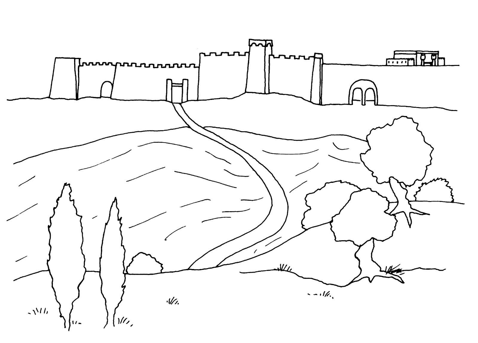 Dans ce livre de coloriage, je te raconte l'histoire d'Esdras et de Néhémie. Ils ont vécu à une époque où le pays d'Israël était dévasté. Des ennemis étaient venus, avaient pris la puissante ville de Jérusalem, et l'avaient laissée en ruine. Les murailles de la ville étaient détruites, et le temple avait été démoli. Il ne restait que peu d'habitants dans le pays. Beaucoup d'habitants de Jérusalem étaient morts au cours de la guerre, les autres avaient été faits prisonniers. On les a déportés en Babylonie et ils devaient obéir à un roi étranger.