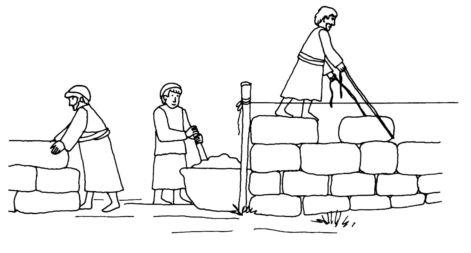 Les ennemis de Néhémie essayent tout de suite d'empêcher les ouvriers de construire les murs. Mais Néhémie sait que Dieu leur accordera d'achever le travail. Dieu a été réjoui que beaucoup d'hommes et de femmes se soient fidèlement appliqués à la construction des murs. Il a fait noter leurs noms dans la bible. Mais il y a malheureusement aussi des hommes qui manquent de droiture. Ils n'étaient pas aptes pour ce travail.
