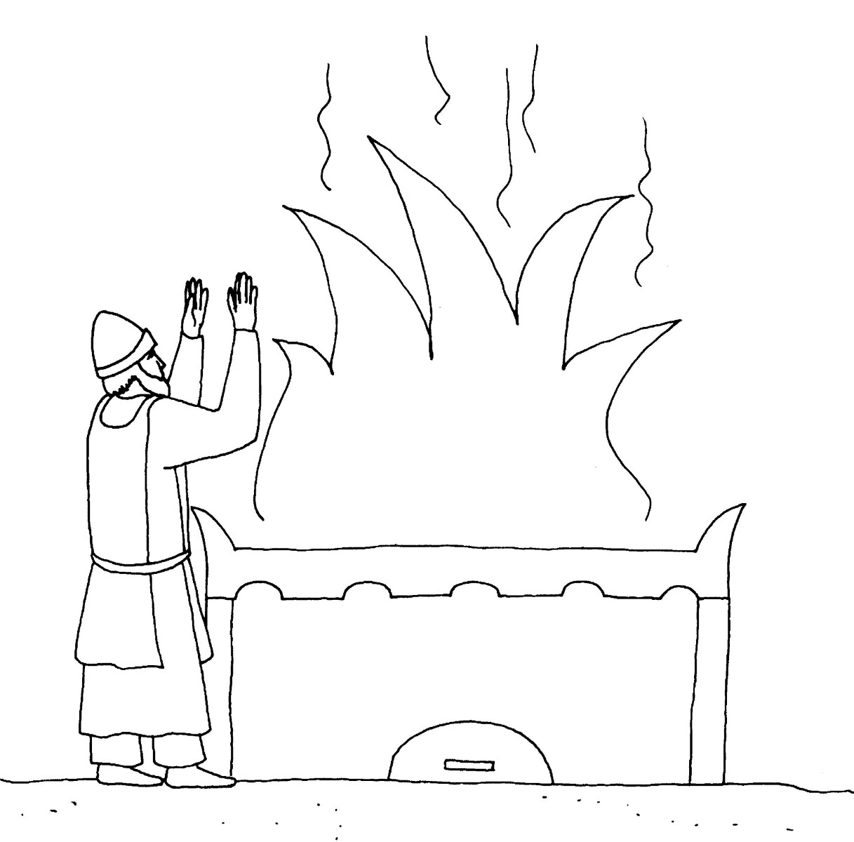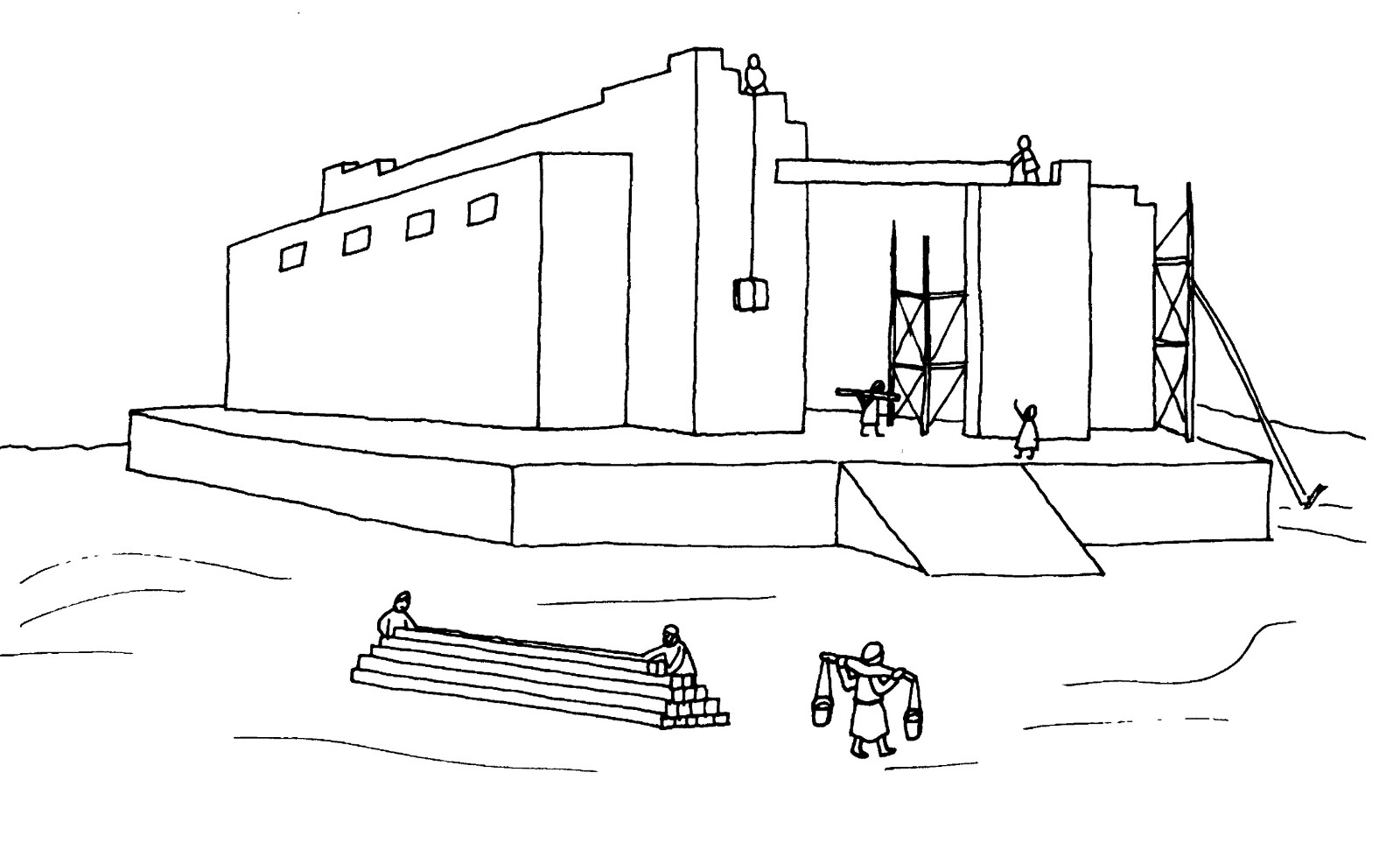 Dés leur arrivée à Jérusalem, ils commencent par construire un autel au milieu des ruines du temple, à l'endroit précis où il se trouvait autrefois, et ils offrent à Dieu des sacrifices.